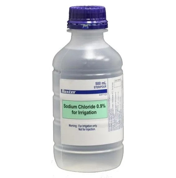 Sodium Chloride for Irrigation Solution is indicated for use as a sterile, non-pyrogenic, isotonic cleansing solution in general surgical procedures (e.g., irrigation of body cavities, tissues or wounds, indwelling urethral catheters, surgical drainage tubes.) – This solution is for irrigation only, not for injection- Sterile if container is intact – Bottle size: 500ml